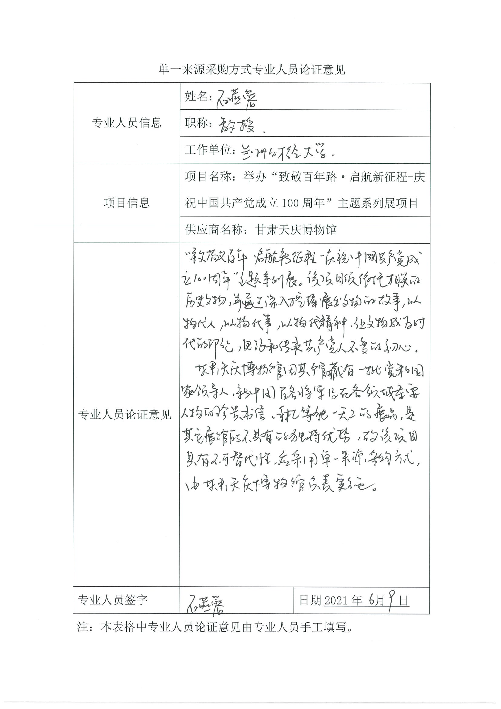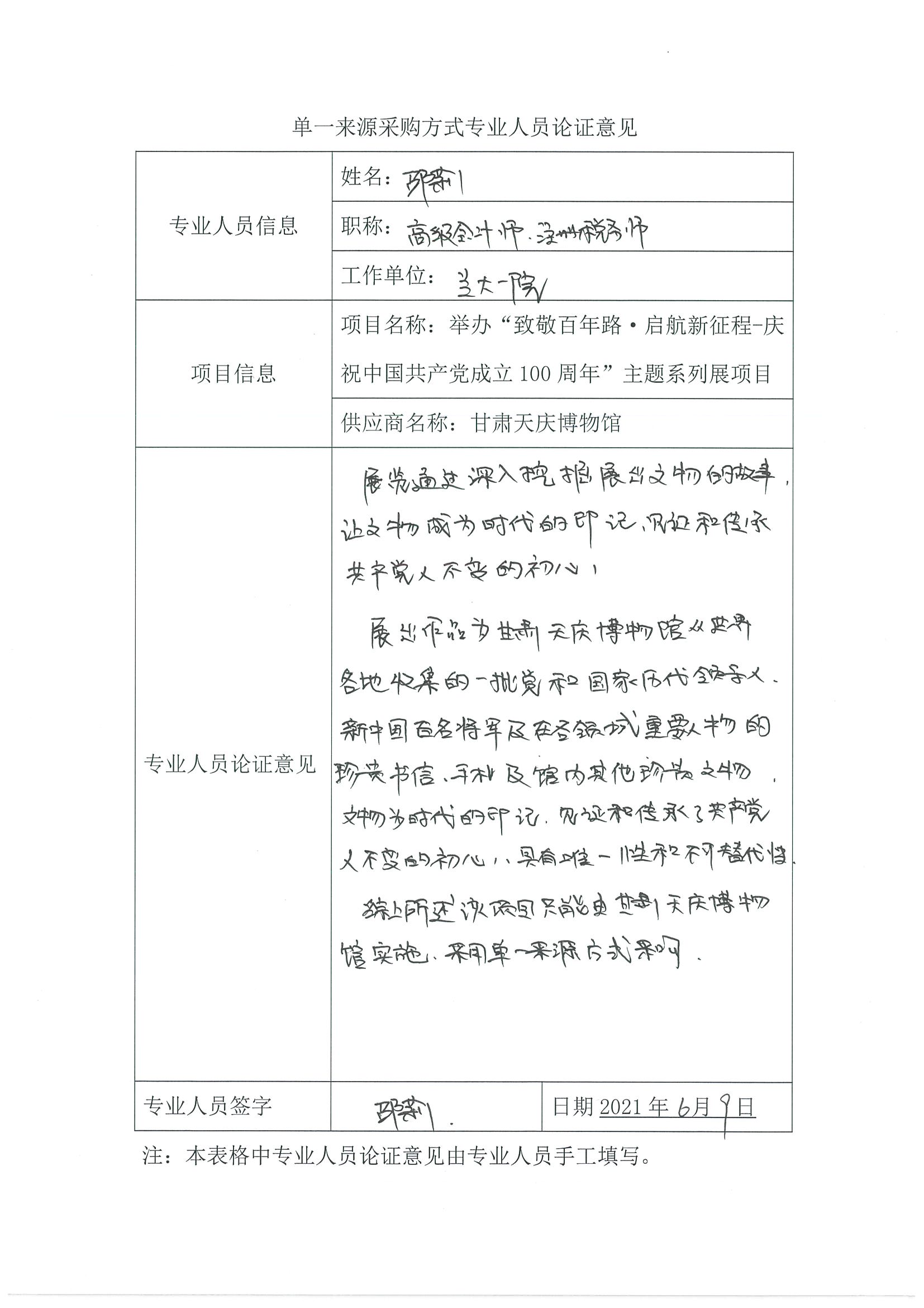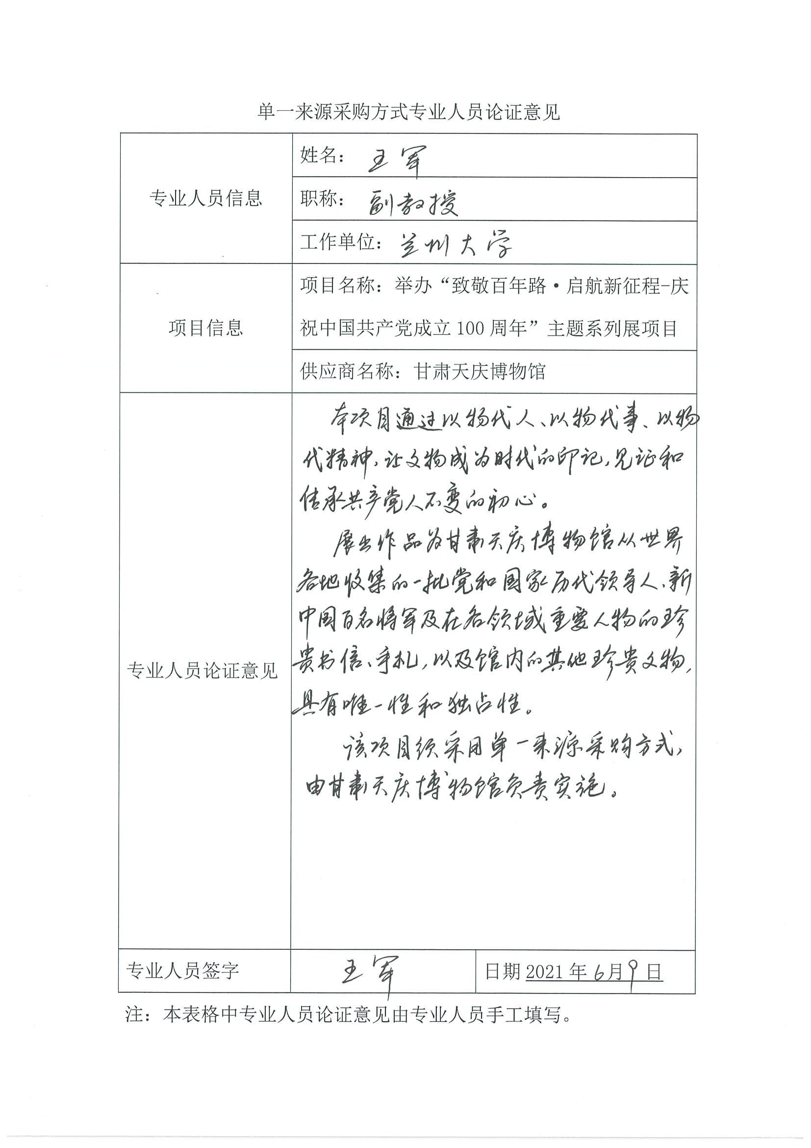 采用單一來源采購方式的原因及說明:甘肅天慶博物館作為愛國主義教育基地,擬將耗時數(shù)年從世界各地收集的一批黨和國家歷代領(lǐng)導(dǎo)人、新中國百名將軍及在各領(lǐng)域重要人物的珍貴書信、手札面向社會公眾展出。此外,還將依托館內(nèi)其它珍貴文物,突出主題、內(nèi)涵豐富,以100年奮斗歷程為主線推出主題系列展,并將通過深入挖掘展出文物的故事,以物代人、以物代事、以物代精神,讓文物成為時代的印記,見證和傳承共產(chǎn)黨人不變的初心。同時,也更是對新時代“不忘初心,牢記使命”主題教育的持續(xù)落實(shí)。故由甘肅天慶博物館負(fù)責(zé)實(shí)施該項目。