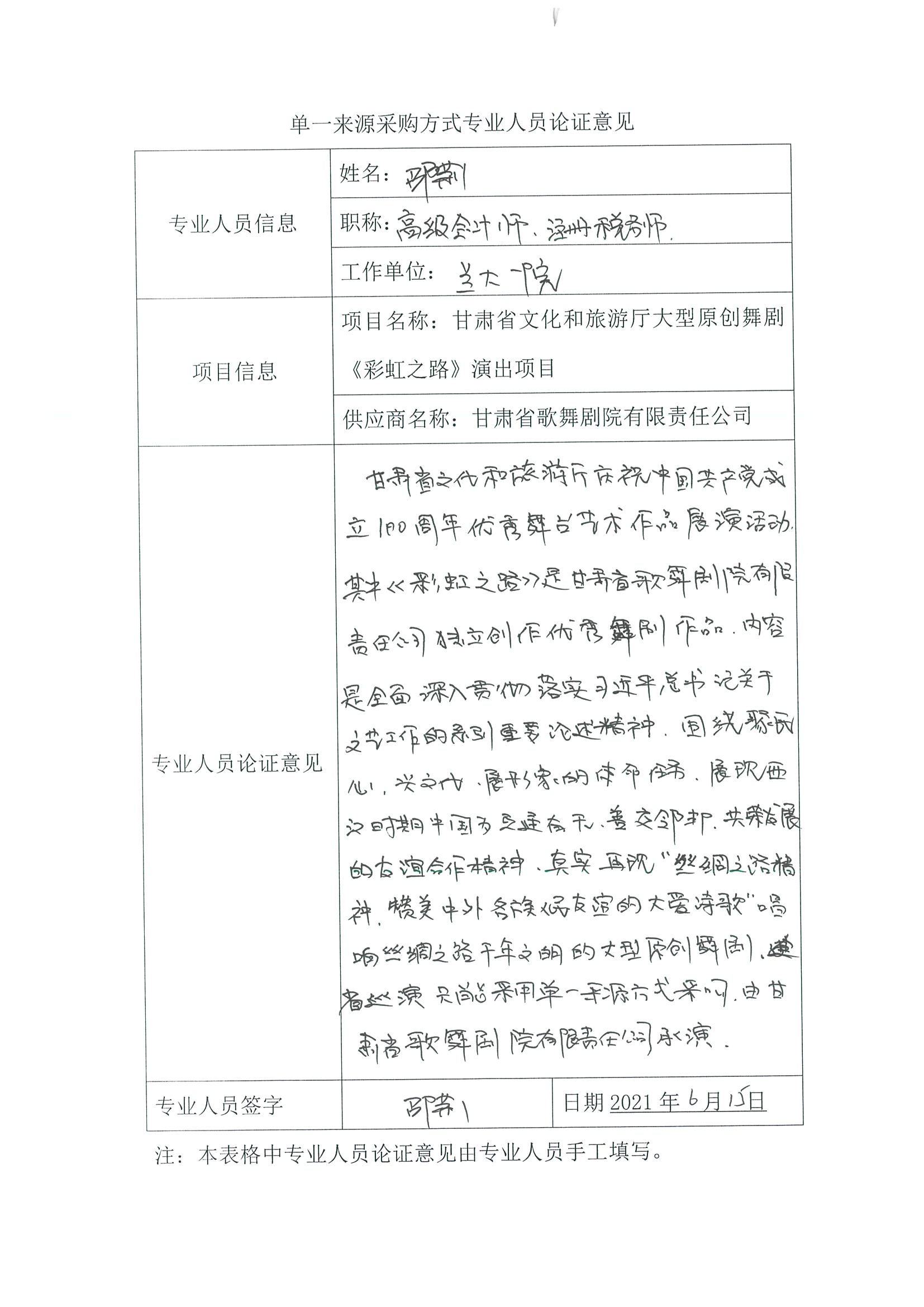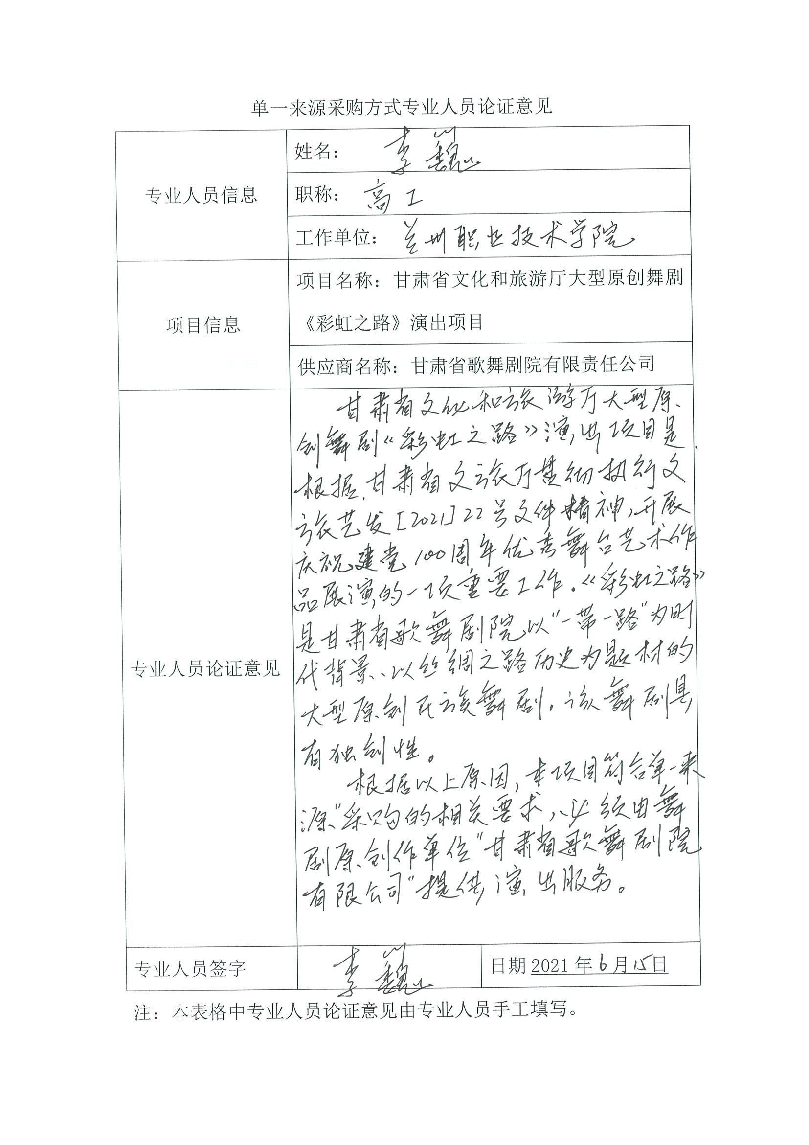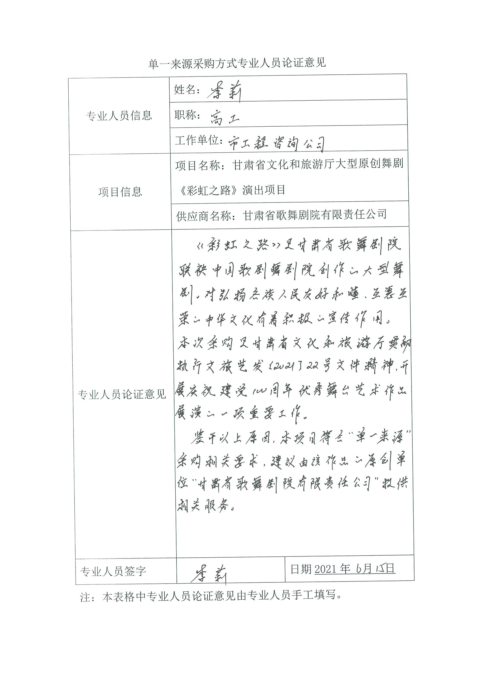 擬定供應(yīng)商名稱:甘肅省歌舞劇院有限責(zé)任公司
