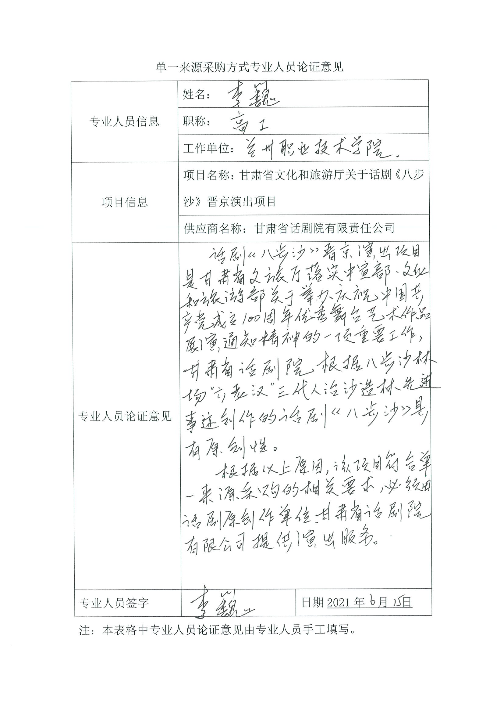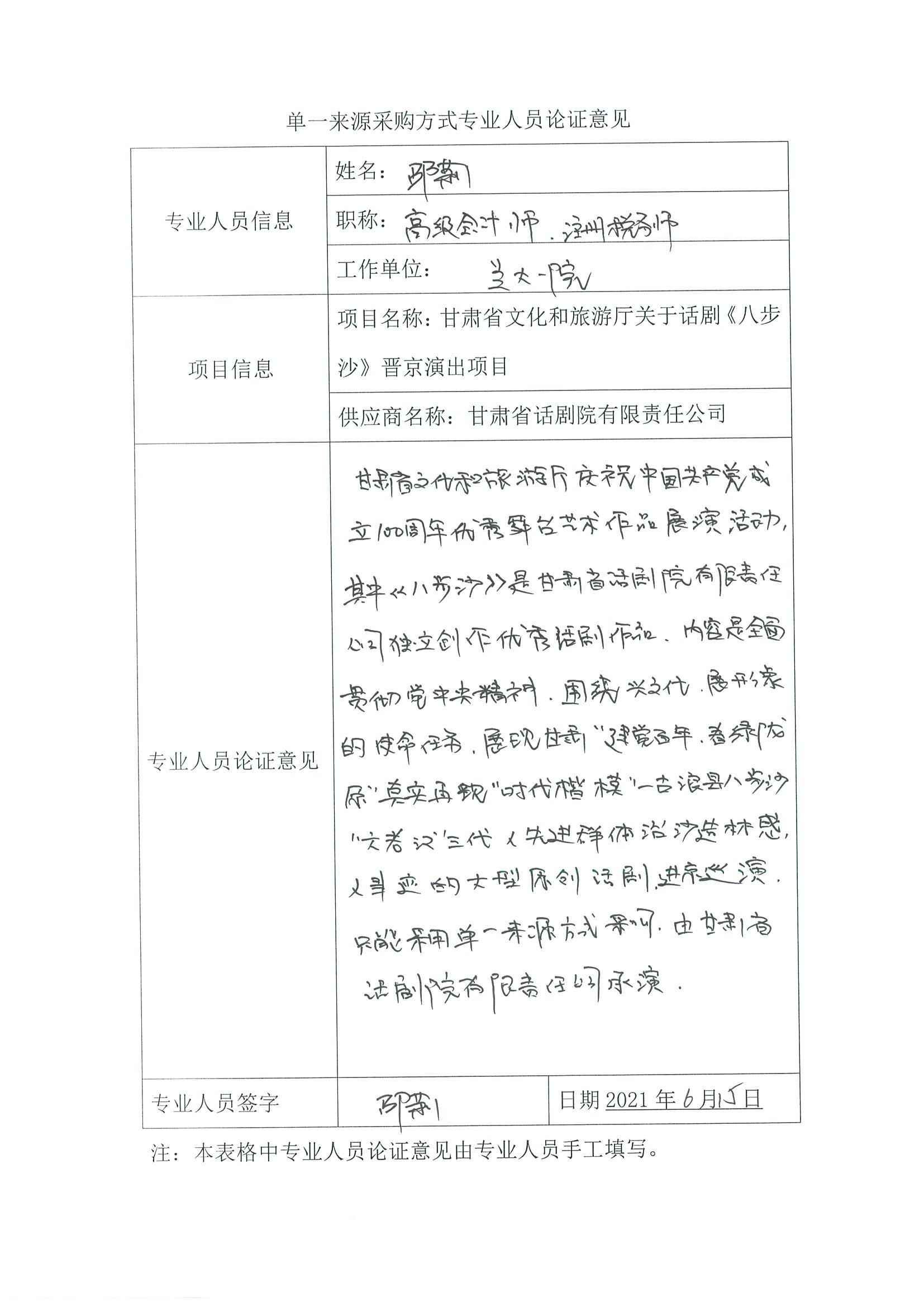 甘肅省文化和旅游廳關于話劇《八步沙》晉京演出項目單一來源公示